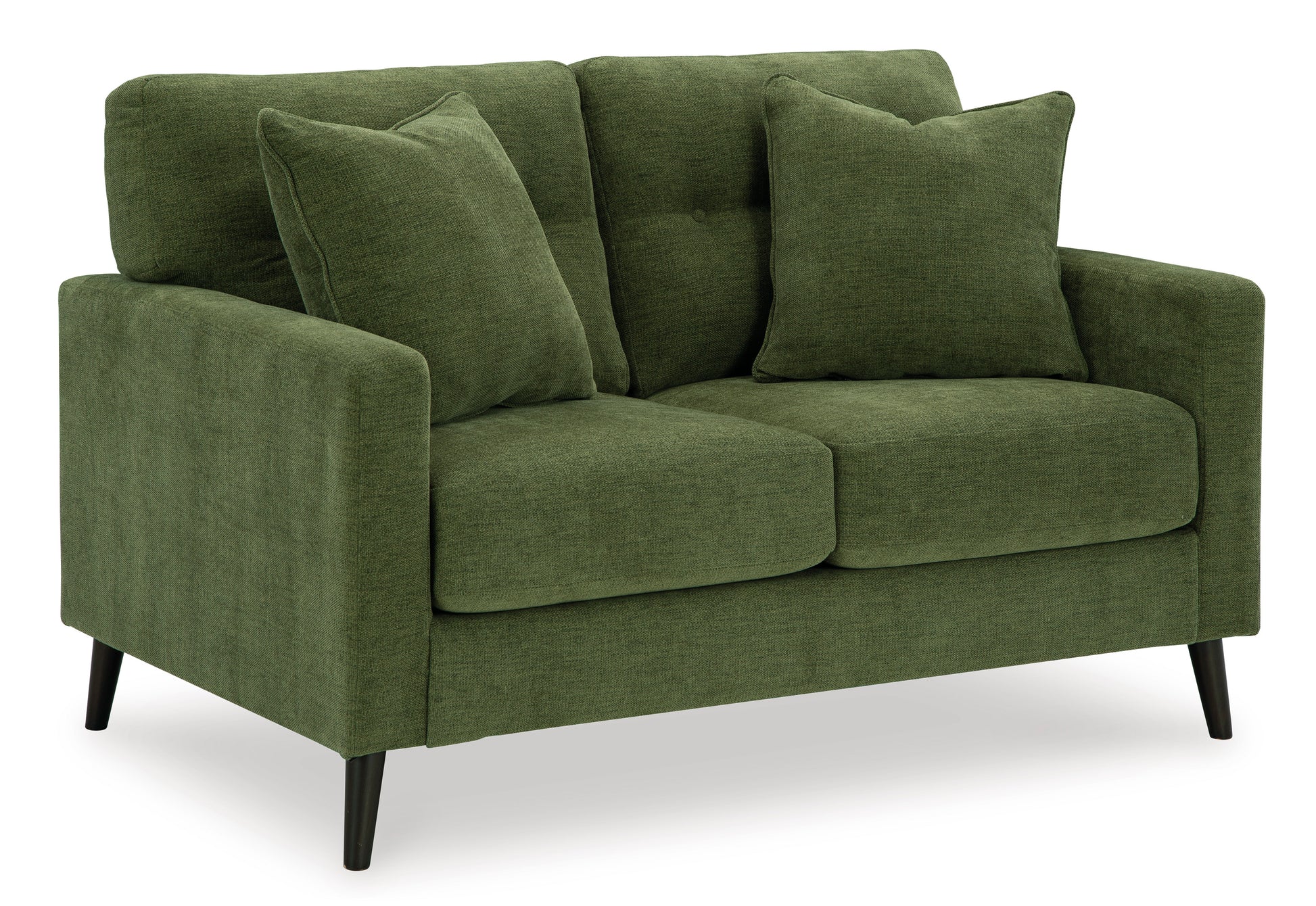 Feed your mid-century modern nostalgia—with a contemporary twist. A vibrant trend-right hue and comfy feel make the Bixler loveseat perfect for lounging solo or with friends and family. Its linear profile adds plenty of fresh style, and the tapered accent legs are a nice revival.