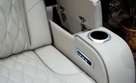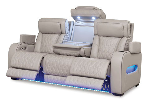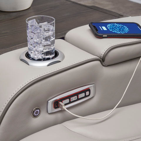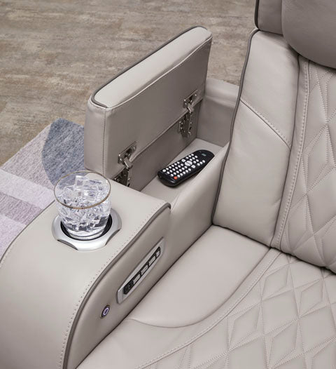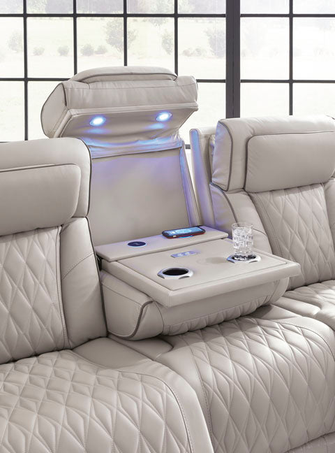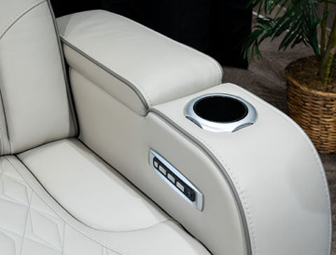 Ready to take your reclining experience to the next level? Then sit up and take notice. With this power reclining sofa, ultimate relaxation is at your fingertips. Experience the pure bliss of an air massage system and heated seats at the touch of a button. The center seat is crafted with a drop-down table with wireless charging and dual cup holders. Plus the luxurious diamond-stitched upholstery is easy on the eyes, adding elegance to any space.