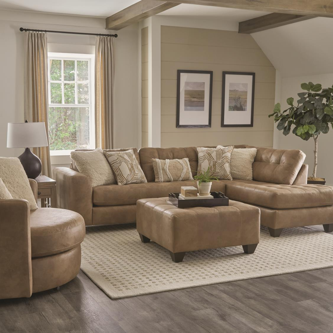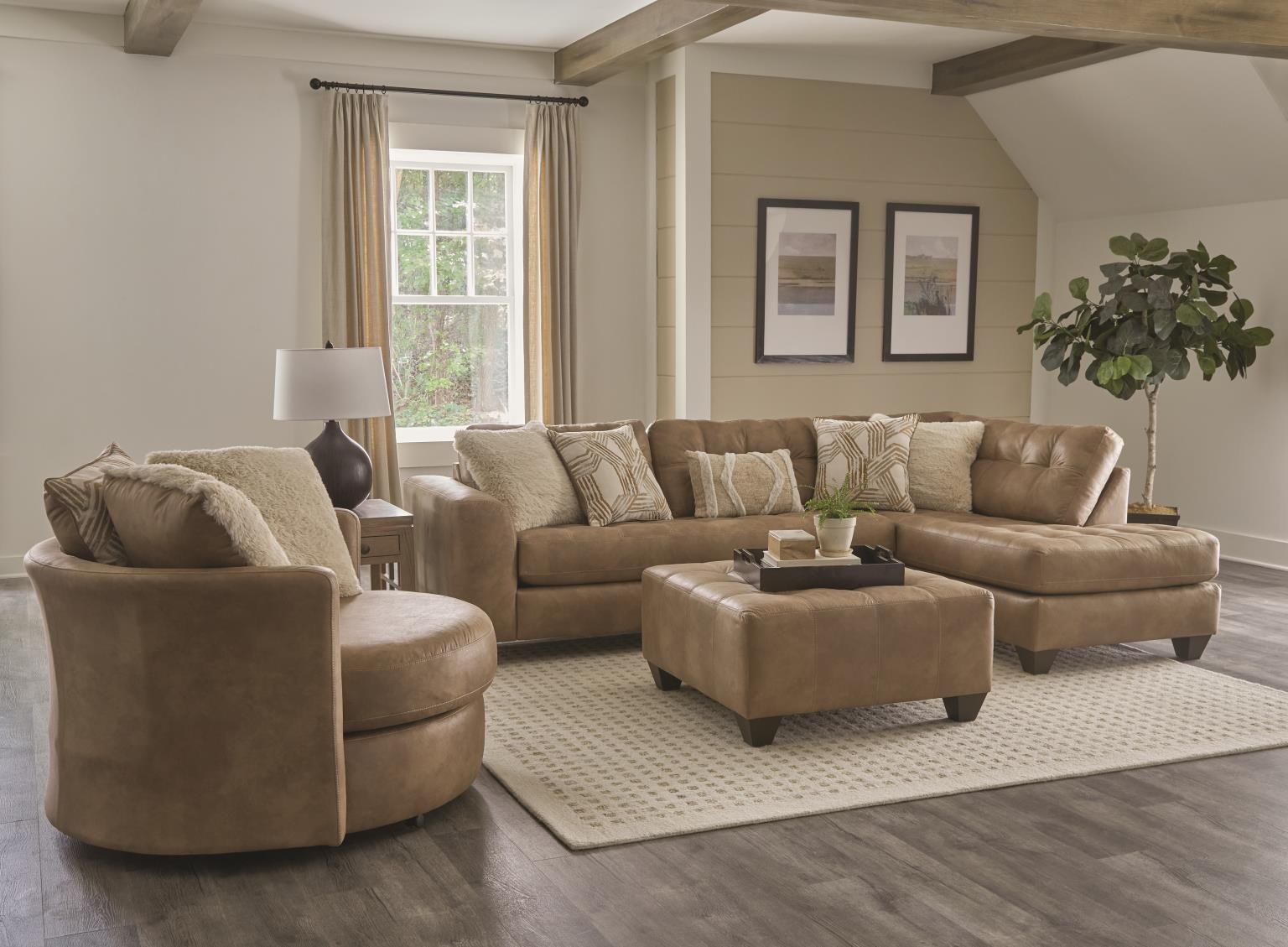 Experience everyday comfort with a touch of luxury in the Crow Camel Group from the 2127 Collection. Featuring rich brown or sleek dark pewter leather-look upholstery, this set enhances your living space with timeless style and inviting warmth. Elegant tufting adds sophistication, while soft neutral pillows create a cozy contrast, making it the perfect centerpiece for relaxed yet refined living.